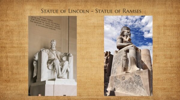 - Lincoln seated like a Pharaoh