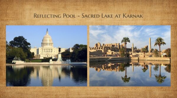 Before us rises the American Obelisk — the Washington Monument — directly inspired by Egypt’s sacred monuments of eternity.